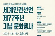 [경기뉴스원/경기뉴스1] | 광주시교육청이 세계인권선언 77주년을 맞아 광주광역시, 국가인권위원회 광주인권사무소와 ‘세계인권선언 기념주간’을 운영한다. 이번 기념주간 행사는 10일 5·18기념문화센터 대동홀에서 기념식을 비롯해 오는 19일까지 ‘아름다운 약속 아름다운 사람들’이라는 주제로 진행된다. 시교육청은 이번 기념주간 동안 학생과 교직원 대상 ‘교실에서 배우는 세계인권선언’, 선생님과 함께하는 인권감수성 교육‘을 진행할 예정이다. ’교실에서 배우는 세계인권 선언‘ 교육은 오는 19일까지 첨단중, 영천중, 월계중 등 3개교 21개 학급 516명의 학생이 참여하는 가운데 진행된다. 당의는 국가인권위원회 광주인권사무소 추천 강사들이 진행하며, 세계인권선언 교육키트를 활용한 참여형 수업으로 진행된다. 이와 더불어 ’선생님과 함께하는 인권 감수성‘ 교육 역시 지난 11월부터 오는 12월 17일까지 송원고 등 광주 지역 9개 고등학교에서 진행된다. 학생인권 조사·구제 담당자가 학교를 직접 찾아 권에 대한 이해’, ‘학생인권 침해 유형별 현황’, ‘인권 관련 민원 예방법’ 등을 강