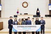 [경기뉴스원/경기뉴스1] | 용인특례시의회는 30일 의장실에서 원주시의회 원주특례시추진특별위원회의 방문을 받고 특례시 추진 및 운영 사례를 공유하는 시간을 가졌다고 밝혔다. 이번 방문은 특례시 추진을 준비 중인 원주시의회가 용인특례시의회의 제도 운영 경험과 의회 조직·권한 구조를 벤치마킹하기 위해 마련됐다. 용인특례시의회에서는 유진선 의장을 비롯해 이윤미 의회운영위원장, 김희영·이진규·기주옥 의원이 참석했으며, 용인특례시 자치분권과 관계자들도 함께했다. 원주시의회 원주특례시추진특별위원회에서는 손준기 위원장과 최미옥·문정환 의원 등 관계자들이 참석했다. 이날 일정은 상호 소개를 시작으로 ▲특례시 운영 현황 및 제도적 기반에 대한 설명 ▲특례시 추진 과정과 의회 역할 공유 ▲의회 시설 견학 순으로 진행됐다. 특히, 참석자들은 ‘지방자치법’과 ‘지방자치분권 및 지역균형발전에 관한 특별법’ 등 특례시 관련 법령 체계, 인구 100만 이상 대도시의 행·재정 수요 증가에 따른 특례시 도입 배경과 필요성, ‘특례시의회 사무기구 구성과 정책지원 전문인력 운영 사례 등에 대해 심도 있는 의견을 나눴다.