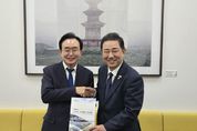 [경기뉴스원/경기뉴스1] | 윤병태 나주시장이 2026년도 국비 확보를 위해 김병기 더불어민주당 원내대표와 단독 면담을 진행하고 한국에너지공과대학교 지원, 에너지 전문과학관 건립, 직류산업 혁신특구 지원 등 7대 핵심사업의 국가적 필요성을 설명하며 국회 차원의 협력을 요청했다. 25일 나주시에 따르면 윤병태 시장은 지난 24일 국회를 방문해 김병기 원내대표와 만나 2026년 주요 국고사업 반영을 위해 필요한 예산 지원을 건의했다. 이번 면담은 지난 3일 한병도 예결위원장을 찾아 주요 사업을 설명한 데 이어 예산 심사 막바지 단계에서 나주시 핵심사업의 필요성을 다시 한번 전달하기 위해 마련됐다. 윤 시장은 인재 양성을 위한 한국에너지공과대학교 출연금 안정적 지원, 국립 나주 에너지 전문과학관 건립, 핵융합 시험설비 구축 등 에너지 분야 국가 전략사업의 추진 필요성을 중점적으로 설명했다. 특히 한국에너지공과대학교 지원과 초전도 도체 시험설비 구축이 이재명 정부가 추진하는 차세대 전력망 구축 정책과 직결되는 기반 사업임을 강조하며 연구와 실증, 산업화를 연결하는 국가 인프라라는 점을 부각했다.