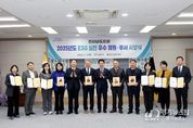 [경기뉴스원/경기뉴스1] | 전라남도의회는 2월 9일 도의회 4층 회의실에서 2025년도 ESG 실천 우수 의원·부서 시상식을 개최했다. 이번 시상식은 전라남도의회가 설정한 18개 실천 지표에 대하여 우수한 성과를 거둔 의원과 부서를 시상하기 위하여 마련됐다. ESG 실천 우수 의원에는 박성재 의원(해남2), 조옥현 의원(목포2), 최무경 의원(여수4), 한숙경 의원(순천7)이 선정됐다. 수상한 의원들은 의정활동을 통해 친환경 경영(E), 사회적 책임(S), 투명한 지배구조(G)를 적극 실천하는 등 ESG 확산에 선도적 역할을 수행했다. 또한, 부서 시상에는 최우수상의 정책담당관실, 특별전문위원실을 비롯한 6개 부서가 수상의 영예를 안았다. 해당 부서들은 친환경 정책 추진, 사회적 책임 강화, 투명한 행정 운영에 적극 참여한 것으로 평가받았다. 김태균 의장은 “ESG는 다음 세대를 위한 우리의 책임”이라며, “올해에도 ESG 실천을 선도하여 지속가능한 지역 발전과 미래가치 실현에 솔선수범하는 전라남도의회가 될 수 있도록 노력하겠다.”고 밝혔다. 한편, 전라남도