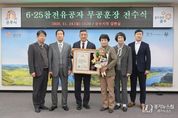 [경기뉴스원/경기뉴스1] | 공주시는 지난 24일 시청 집현실에서 6·25전쟁에 참전해 용감하게 헌신하고 공을 세운 고(故) 이재설 중사의 유가족에게 무공훈장과 훈장증을 전달했다고 밝혔다. 고(故) 이재설 중사는 6·25전쟁 당시 제6보병사단 소속으로 주요 전선에서 혁혁한 전공을 세워 1950년 화랑무공훈장 수여가 결정됐으나, 전쟁기의 혼란으로 실물 훈장이 전달되지 못한 채 75년 동안 미전수 상태로 남아 있었다. 전쟁 이후에도 군 복무를 이어간 고인은 소령으로 제대했으며, 이번 전수는 육군본부가 추진 중인 ‘6·25전쟁 무공훈장 주인공 찾기 캠페인’을 통해 유가족을 확인하면서 이뤄졌다. 이날 전수식에는 유족 대표인 자녀 이제남 씨를 비롯해 자녀와 외손자가 참석했으며, 이제남 씨가 훈장과 훈장증을 전달받았다. 이제남 씨는 “오랜 세월이 지나서야 아버지의 공적이 공식적으로 인정받게 되어 감회가 깊다”며 “훈장을 받는 순간 참전 당시의 희생과 헌신을 다시 떠올리게 됐다”고 말했다. 최원철 시장은 “국가를 위해 헌신한 참전용사의 숭고한 희생을 깊이 기린다”며 “앞으로도 보훈가족 예우와 지원을