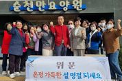 [경기뉴스원/경기뉴스1] | 전라남도의회 한춘옥 의원(더불어민주당, 순천2)은 지난 2월 6일 설 명절을 앞두고 순천만요양원과 셀라요양원을 방문하여 위문품을 전달하고 종사자들을 격려하는 시간을 가졌다. 순천시 소재 순천만요양원과 셀라요양원은 노인요양시설로서 치매·중풍 등 노인성질환으로 인해 일상생활을 혼자 수행하기 어려운 어르신들을 대상으로 일상생활 서비스와 의료재활 서비스 등을 제공하고 있다. 한춘옥 의원은 “어르신들의 재활을 도우며 복지 현장 일선에서 최선을 다하고 계시는 종사자 및 봉사자들의 헌신에 깊이 감사 드린다”며 “우리 어르신들이 조금 더 따뜻하고 행복한 설 명절을 보내시길 바란다”고 말했다. 순천 출신의 한춘옥 의원은 매년 명절을 맞아 지역의 사회복지시설을 위문하는 등 주변의 이웃을 돌보는 일에 앞장서고 있으며, 다양한 봉사활동에 적극적으로 참여하고 있다.