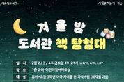 [경기뉴스원/경기뉴스1] | 부산광역시립해운대도서관(관장 노장석)은 오는 13일부터 27일까지 2·3·4주 금요일 저녁마다 도서관 유아·어린이 영어 자료실에서 유아와 초등 저학년 자녀를 둔 가족 6팀을 대상으로 ‘겨울밤 도서관 책 탐험대’ 프로그램을 운영한다. 이번 행사는 가족이 함께 참여하는 책 탐험 활동을 통해 독서에 대한 흥미를 높이고, 가족 간 소통의 기회를 제공하기 위해 마련했다. 프로그램은 ▲도서관 탐험대 입단식과 아이스브레이킹 활동 ▲도서관 책 탐험을 통한 가족 협동 미션 해결 ▲겨울밤 등대 독서 및 책 소개하기 등으로 구성돼 가족이 함께 즐길 수 있는 다양한 독서 체험 활동으로 운영된다. 참여를 희망하는 가족은 오는 4일 오전 10시부터 부산시교육청 통합예약포털을 통해 선착순으로 신청하면 된다. 자세한 내용은 해운대도서관 홈페이지를 확인하거나 독서문화과로 문의하면 된다. 노장석 해운대도서관장은 “이번 프로그램이 가족이 함께 도서관에서 특별한 추억을 만들고, 책 읽기의 즐거움을 나누는 소중한 시간이 되기를 바란다”고 말했다.
