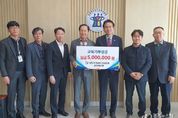 [경기뉴스원/경기뉴스1] | 청주교육지원청은 26일 대한기계설비건설협회 충북도회에서 장학금 500만원을 기탁했다고 밝혔다. 장학금은 이날 청주교육지원청에서 양승복 충북도회장이 참석한 가운데 박종원 교육장에게 전달됐다. 양승복 회장은 “기탁금은 도내 기계설비건설협회 회원사들이 수익금의 일부를 사회에 환원하는 차원에서 모은 것” 이라며 어려운 환경에서 공부하는 학생들에게 조금이나마 도움이 됐으면 좋겠다”고 말했다. 대한기계설비건설협회 충북도회는 지난 2007년부터 해마다 500만원의 장학금을 청주교육지원청에 기탁해 왔다. 한편, 박종원 교육장은 “청주교육발전을 위해 함께하는 분들의 뜻을 생각해 관내 학생들이 우리 지역을 이끌어 나갈 큰 인재로 성장할 수 있도록 힘써 나가겠다”고 말했다.