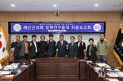 [경기뉴스원/경기뉴스1] | 예산군의회는 8일 의회 문화강좌실에서 '예산군 자치법규 정비를 위한 연구모임' 정책연구용역 최종보고회를 개최했다. 이날 보고회에는 연구모임 대표의원인 김영진 의원을 비롯하여 임종용·이길원·김태금 의원과 군청 관계자·외부 전문가 및 연구수행기관 등이 참석했다. 이번 보고회에는 그동안 추진된 연구 결과를 종합 보고받고 조례 정비 방안과 중복·미비 조례 개선 과제 등에 대한 발표가 진행됐다. 참석 의원과 군청 관계자·외부 전문가들은 발표된 연구 결과를 바탕으로 ▲조례의 실효성 제고 방안 ▲상위 법령과의 정합성 확보 ▲행정 실무 적용 가능성 등에 대해 다양한 의견을 제시했다. 또한 불필요하거나 중복된 조례를 정비하고, 군민 생활과 밀접한 규정의 실질적 개선 방향을 논의하는 등 자치입법의 내실화를 위한 심도 있는 토론이 이어졌다. 김영진 대표의원은 “이번 연구는 단순한 조례 정비를 넘어 군민의 권익을 보호하고 행정의 투명성과 효율성을 높이는 기반을 다지는 과정이었다”며, “연구 결과 도출된 개선 과제가 실제 정책과 제도에 반영될 수 있도록 최선을 다하겠다”고 밝혔다.