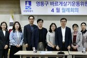 [경기뉴스원/경기뉴스1] | 수원시 영통구는 지난 24일 바르게살기운동 영통구지도위원회가 영통구청 상황실에서 각 동 위원장 및 총무 등 14명이 참석한 가운데 4월 월례회의를 개최했다고 밝혔다. 이날 회의에서는 ▲수원시 평생학습관 2분기 프로그램 수강생 모집 ▲상반기 찾아가는 우산수리센터 운영 ▲경기 기후보험 시행 ▲공영주차장 승용차 5부제 시행 등 주요 시·구정 정책을 공유했다. 또한, 전국동시지방선거를 앞두고 위원회의 선거기간 중 활동 제한사항을 안내하고, 6월 이후 각종 봉사 및 지역사회 활동이 재개됨에 따라 적극적인 참여를 독려했다. 장수석 영통구청장은 “지방선거 기간 동안 위원 여러분의 공정한 자세와 협조를 당부드린다”며, “특히 취약계층의 돌봄 활동과 이웃 안부 살피기에도 적극적으로 힘써주시길 바란다. 선거가 끝난 이후 다시 활발한 지역 봉사활동이 이어질 수 있기를 응원한다”고 말했다. 김명순 회장은 “최근 지역사회의 변화에 대응하기 위해 위원들의 적극적인 참여와 연대가 중요하다”며 “저를 포함한 모든 위원이 한마음으로 소통하며, 주민들의 불편을 해소하고 구정 발전에 기여할 수 있도록 함