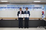 [경기뉴스원/경기뉴스1] | 제주관광공사와 유엔훈련연구기구(UNITAR) 제주국제연수센터가 국제협력 기반조성 및 상호협력을 위해 손을 잡았다. 제주관광공사는 지난 9일 도내 일원에서 UNITAR 제주국제연수센터(소장 신성철)와 제주의 글로벌 위상 강화 및 지속 가능한 관광 활성화를 위한 업무협약을 체결했다고 10일 밝혔다. 1963년 설립된 UNITAR(유엔훈련연구기구)는 교육훈련과 종합적인 연구를 담당하고 있으며, 전 세계 33개 지역연수센터를 통해 지속가능발전목표(SDGs) 달성을 지원하고 있다. 이들 센터 중 하나인 제주국제연수센터는 지난 2010년 개소 이후 모범적인 연수사업을 운영해오고 있다. 특히 현재까지 아시아·태평양 지역 정부 관계자와 국내·외 청년 등 2만8천여 명에게 세미나·워크숍·온라인 연수 등을 제공, 역량 강화와 지속 가능한 발전에 기여하고 있다. 이날 두 기관은 △국제연수 및 훈련 등의 프로그램 운영 △제주 지역문화 기반의 글로컬 관광 콘텐츠 개발·활용 △국제기구 네트워크를 활용한 제주 글로벌 위상 강화 △유엔 지속가능발전목표(SDGs) 이행 증진 등의 분야에서 공동 협력하기로 했다.
