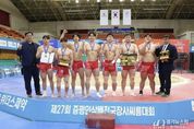 [경기뉴스원/경기뉴스1] | 광주시청 씨름팀이 충북 증평스포츠센터에서 열린 ‘제27회 증평인삼배 전국장사씨름대회’에서 단체전 우승을 차지하고 개인전에서도 다수의 입상자를 배출했다. 27일 시에 따르면 광주시청 씨름팀은 지난 17일부터 7일간 진행된 이번 대회에서 조직력과 기술을 바탕으로 경기력을 발휘하며 단체전 정상에 올랐다. 이번 우승은 선수 개개인의 기량과 함께 팀 단합이 결합된 결과로 평가된다. 개인전에서도 성과가 이어졌다. 총 6명의 선수가 각 체급에서 상위권에 입상했다. 김수용(경장급)과 이청수(용사급)가 1위를 차지했으며, 박현욱(청장급), 문윤식(용장급), 김지혁(용사급), 차승민(장사급)이 각각 3위를 기록했다. 시 관계자는 “광주에서 열린 제72회 경기도체육대회에서도 단체전과 종합 부문 모두 2위를 기록했다”며 “선수들이 최선을 다해준 데 대해 격려한다”고 말했다.