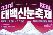 [경기뉴스원/경기뉴스1] | 태백시는 제33회 태백산 눈축제 기간 중, 눈축제 장소인 태백산국립공원 제1주차장 현장에서 축제 방문객들에게 태백의 겨울 매력을 알리고 현장 참여형 즐길거리를 제공하기 위해 설경 사진전과 태백시 SNS 채널 구독 이벤트를 운영한다고 밝혔다. 먼저, 오는 2월 2일부터 6일까지 눈축제 기간 중 ‘겨울특별시 태백 설경 사진전’을 개최한다. 이번 사진전에서는 태백의 겨울 자연경관과 대표 설경 명소를 담은 사진 작품 10점을 액자로 전시해, 방문객들이 태백의 청정한 겨울 풍경을 가까이에서 감상할 수 있도록 할 예정이다. 설경 사진전은 태백의 겨울철 자연미를 생생하게 전달하고, 눈축제를 찾은 관광객들에게 또 하나의 볼거리를 제공함으로써 태백의 관광 매력을 한층 더 높일 것으로 기대된다. 이와 함께 태백시는 1월 31일부터 2월 8일까지 눈축제 기간 동안 태백시 SNS 채널 구독 인증 이벤트를 진행한다. 이벤트 참여 방법은 태백시 공식 SNS 채널을 구독한 뒤, 현장에서 구독 화면을 제시하면 누구나 참여할 수 있으며, 룰렛 이벤트를 통해 소정의 기념품을 받을 수 있다. 기념품으로는 태붐이 캐릭