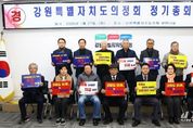[경기뉴스원/경기뉴스1] | 강원특별자치도의정회는 1월 27일 11시.도의회 세미나실에서 2026년도 정기총회를 개최했다. 정기총회를 진행한 가운데 의정회원들이 강원특별법 3차 개정안 심사와 통과 촉구 결의문 낭독과 함께 피켓 퍼포먼즈로 강원특별자치도의 제도적 기반 강화를 위한 의지를 한데 모았다. 이번 총회에서는 지난해 추진한 사업 성과 및 예산결산 승인과 2026년도 주요사업계획 및 세입세출예산 의결과 의정회의 지속 가능한 발전과 회원 화합을 도모하기 위한 제15대 임원진 개선이 있었다. 강원특별자치도의정회 박주선 (朴柱善/홍천/1942.06.19.생)회장이 제15대 회장으로 유임(‘26.1.2~’30.1.19/임기4년)됐다. 박주선 회장은 홍천농고(졸), 강원대행정대학원(수료), 홍천군 문화공보실장, 사회과장, 의화사무과장, 내무과장,자치행정과장,기획실장,홍천농고동창회부회장,대한역도연맹공인심판, 국제역도 연맹공인심판, 홍천군궁도회장, 자유총연맹홍천군지부장, 강원도사회 복지협의회회장, 강원특별자치도문화원연합회장, 강원도의정회사무총장, 강원특별자치도의회 제5대의원과 6대의원을 역임하시고, 현재 홍천군문