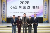 [경기뉴스원/경기뉴스1] | 아산시의회 문화복지환경위원회는 지난 12월 20일 열린 ‘2025년 아산 예술인 대회’에서 지역 문화예술 발전에 기여한 공로를 인정받 아 감사패를 수상했다. 이번 행사는 (사)한국예술문화단체총연합회 아산지회 주관으로 개최됐으며, 한 해 동안 아산시 문화예술 발전을 위해 헌신해 온 예술인과 유관 단체 관계자들이 한자리에 모여 그 노고를 격려하고 화합을 다지는 뜻깊은 자리로 마련됐다. 이날 감사패는 이춘호 위원장을 비롯해 김은아 부위원장, 맹의석 의원, 천철호 의원, 김미성 의원에게 수여됐다. 문화복지환경위원회는 그동안 문화예술 분야 정책과 예산 심사 등을 통해 지역 예술인의 창작 환경 개선과 문화예술 기반 확충을 위해 지속적으로 노력해 왔으며, 이러한 의정활동 성과가 지역 문화예술계로부터 높이 평가받아 이번 수상으로 이어졌다. 문화복지환경위원회 위원들은 “아산 문화예술 발전을 위해 현장에서 묵묵히 헌신해 온 예술인 여러분께 깊은 감사의 말씀을 드린다”며 “앞으로도 예술인들의 창작 환경 개선을 위해 지속적으로 노력하겠다”고 밝혔다. 아산시의회 문화복지환경위원회는 앞으로도