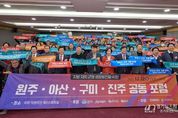 [경기뉴스원/경기뉴스1] | 아산시가 원주시·구미시·진주시와 손잡고 대도시 특례 기준 완화와 지방자치분권 강화를 위한 공동 대응에 나섰다. 오세현 아산시장은 22일 국회의원회관 제2소회의실에서 열린 ‘지방자치 균형성장 발전을 위한 원주·아산·구미·진주 공동포럼’에 참석했다. 이날 포럼에서는 4개 도시가 함께 대도시 특례 기준 완화와 관련한 공동건의문에 서명하고, 관련 법령 개정을 정부와 국회에 공식 건의했다. 이날 행사에는 아산·원주·구미·진주시 단체장을 비롯해 지역구 국회의원과 전문가들이 참석했다. 참석자들은 지방 중추도시가 스스로 성장의 기준을 세우고, 국가 균형발전의 주체로 기능해야 한다는 데 뜻을 모았다. 개별 도시 차원의 요구를 넘어, 유사한 제도적 한계를 겪고 있는 지방 중추도시들이 연대해 제도 개선을 촉구한 공식 행동이라는 점에서 의미를 더했다. 공동건의문에는 ▲인구 30만 명·면적 500㎢ 이상 지방자치단체에 대한 대도시 특례 기준 완화 ▲핵심 거점도시가 국가 균형발전의 축으로 자리매김할 수 있도록 하는 제도적 기반 마련 ▲분권과 자율을 통해 지방이 자립적으로 성장할 수 있는 실질적인 권한 이양과