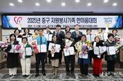 [경기뉴스원/경기뉴스1] | 대전 중구는 8일 중구청 대회의실에서 중구 자원봉사센터(센터장 김진화) 주관으로 ‘2025년 자원봉사 가족 한마음대회’를 개최했다고 밝혔다. 이날 행사는 중구 자원봉사협의회 윤덕순 회장을 비롯한 자원봉사자 300여 명이 참석한 가운데, 한 해 동안 펼쳐진 자원봉사활동을 담은 영상을 시청하고 지역사회에 헌신한 우수 자원봉사자와 우수 봉사단체에 표창을 수여하는 등 참석자들의 큰 박수와 축하 속에서 진행됐다. 취약계층 밑반찬 나눔, 어르신 안부 살피기, 무료 세탁 봉사 등 지역 어려운 이웃을 위해 노력한 자원봉사자 25명은 중구청장 표창을, 22명은 중구의회 의장 표창을 수상했다. 단체 표창은 은행선화동 자원봉사협의회를 포함한 14개 자원봉사팀이 수상했다. 김진화 센터장은“오늘 한마음대회가 자원봉사자들의 노고를 격려하고 단합하는 시간이 됐기를 바라며, 자원봉사자가 안전하고 즐겁게 활동할 수 있는 환경 조성을 위해 최선을 다하겠다.”라고 말했다. 중구 관계자는“이웃에 대한 나눔과 배려의 정신으로 헌신적인 봉사활동을 펼쳐주신 회원들께 감사드리며, 앞으로도 구민이 함께 만들어가는