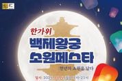 [경기뉴스원/경기뉴스1] | 추석 전날 밤, 익산 백제왕궁이 시민들의 소망을 담은 소원등으로 환히 빛난다. 익산시는 추석 전날인 오는 10월 5일에 유네스코 세계유산 백제왕궁(왕궁리 유적)에서 '한가위 백제왕궁 소원페스타 : 천년의 소원을 담다'를 개최한다고 25일 밝혔다. 참여는 사전 예약과 현장 접수 모두 가능하다. 사전 예약은 오는 29일 오전 10시부터 마수리늘배움협회 누리집을 통해 선착순 800명을 접수하고, 현장에서도 200명을 선착순으로 모집한다. 이번 축제는 시민들이 직접 적은 소원문을 '소원등'에 달아 백제왕궁 밤하늘을 밝히며, 가족과 이웃이 함께 소망을 나누는 특별한 시간으로 꾸며진다. 소원등은 근심을 내려놓고 평안과 희망을 기원하는 상징으로 달맞이, 연등 문화 등의 풍속과 맞닿아 있다. 이에 가족의 안녕을 기원하고 풍요에 감사하는 추석의 의미를 한층 깊게 할 것으로 기대를 모은다. 행사는 오후 5시 소원문 쓰기로 시작된다. 이어 △백제의 마술사 공연 △버블쇼 △사물놀이패와 어우러지는 백제왕궁마을장터 재담마당극 등 다채로운 무대가