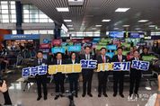 [경기뉴스원/경기뉴스1] | 화성특례시를 비롯한 성남시, 광주시, 용인특례시, 안성시, 진천군, 청주시 등 7개 시군이 ‘중부권 광역급행철도(잠실~청주)’의 조기 추진을 촉구하기 위한 결의에 나섰다. 이들 지자체는 14일 청주국제공항에서 정명근 화성특례시장을 비롯한 방세환 광주시장, 이상일 용인특례시장, 김보라 안성시장, 송기섭 진천군수, 임종철 성남시 부시장, 신병대 청주시 부시장 등이 참석한 가운데 결의대회를 개최했다. 참석자들은 중부권 광역급행철도 조기 추진을 위한 공동건의문 발표 및 서명에 이어, 핸드프린팅과 슬로건 퍼포먼스를 펼치며 사업 조기 착공을 향한 강한 의지를 다졌다. 중부권 광역급행철도는 서울과 이들 지자체를 연결하는 연장 약 134km의 민간제안사업으로, 공동건의문에는 ▲민자적격성조사 신속 통과 ▲관련 행정절차 신속 이행 ▲사업 조기 착공을 위한 관계기관의 적극적인 관심과 협조를 건의하는 내용이 담겼다. 건의문은 관계기관에 전달될 예정이다. 앞서 화성특례시는 청주국제공항 접근성 강화와 인접 지자체 이동 편의 개선을 위해 ‘동탄~청주공항 광역철도 사업’을 추진해 왔으며, 해당 사업