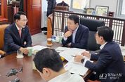 [경기뉴스원/경기뉴스1] | 이완섭 서산시장이 2026년도 국비 확보를 위한 발품행정에 총력을 기울인다. 이 시장은 13일 국회에서 성일종 국방위원장을 만나 2026년도 정부 예산 심의 과정에서 서산시 주요 현안 사업에 대한 국비 반영과 증액을 건의하고, 각 사업의 필요성을 직접 설명했다. 이날 논의된 주요 사업은 ▲한우역사박물관 ▲한국생명공학연구원 서산분원 ▲순환형 매립지 조성 ▲국립국악원 서산분원 ▲도심주변 친환경호수 조성 등 5개다. 시는 한우산업의 본고장인 운산면에 한우역사박물관 건립할 방침이며, 이를 위한 첫 단계로 기본계획 및 타당성 용역비 2억 원의 국비를 요청했다. 또한, 이 시장은 2026년 한국생명공학연구원 서산분원 설계비로 4억 1천만 원을 반영해 줄 것을 건의했다. 한국생명공학연구원 서산분원(총사업비 448억 원)은 최근 타당성 조사를 통과해 순항 중이며, 융합그린바이오의 핵심 거점이 될 전망이다. 이어, 관내 매립장 포화에 대응해 안정적인 폐기물 처리 체계를 구축하고자 추진 중인 환경종합타운 순환형 매립지 조성을 위한 기본 및 실시설계비 2억 원 확보