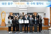 [경기뉴스원/경기뉴스1] | 대전 중구는 27일 (사)대전YWCA(대표 홍유미)와 함께 ‘중구가족센터’ 운영 위·수탁 협약을 체결했다고 밝혔다. 대전YWCA 강당에서 열린 이번 협약식에는 김제선 중구청장과 홍유미 (사)대전YWCA 대표를 비롯한 양 기관 관계자들이 참석했다. 이번 협약식은 내년 가족센터 개소를 앞두고 김제선 중구청장이 가족센터 예정지를 직접 방문해 전환 추진 현황을 점검하고, 수탁기관과 함께 향후 안정적인 운영 방안을 논의하기 위해 마련됐다. 참석자들은 지역사회 가족지원체계 강화를 위한 협력 의지를 다졌다. 내년 1월 문을 여는 중구가족센터는 기존 중구다문화가족지원센터의 기능을 확장해 새롭게 출범하는 기관이다. (사)대전YWCA는 2015년부터 올해까지 다문화가족지원센터를 위탁 운영하며 쌓은 경험과 전문성을 높게 평가받아 지난 16일 가족센터 수탁기관으로 최종 선정됐으며, 내년부터 2030년까지 5년간 센터 운영을 맡아 지역 여건과 가족 특성을 반영한 맞춤형 통합가족서비스를 제공할 예정이다. 중구가족센터는 다문화가족뿐 아니라 한부모·조손·맞벌이·청소년 등 다양한 가족을 포괄하는 보편적 가족지원기