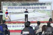 [경기뉴스원/경기뉴스1] | 관악구가 지난 23일 관악산 원신지구 내 테니스장 조성을 위한 착공식을 개최하며 관악산공원 24 프로젝트 마무리 여정의 본격적인 출발을 알렸다. 이날 행사에는 박준희 관악구청장을 비롯해 시·구의원, 지역 주민 등 100여 명이 참석해 올해 첫 힐링 인프라 착공을 축하했다. 테이프 커팅과 시삽식에 참여한 박 구청장은 “테니스장이 완공되면 운동하러 오셨다가, 정원에서 잠시 쉬기도 하고 이웃과 인사도 나누는 정원형 생활 체육공간을 즐기시게 될 것”이라며 설명했다. 착공식은 테니스장을 포함한 공원 조성 사업 경과보고를 시작으로 ▲내빈 축사 ▲테이프 커팅식 및 시삽식 ▲기념촬영 순으로 진행됐다. 관악산 원신지구 테니스장 조성 사업은 힐링·정원도시 관악 조성을 위한 역점 사업인 ‘관악산공원 24 프로젝트’의 일환이다. 구는 과거 무단 경작지였던 삼성동 일대 관악산 자락(신림동 산85-19)에 자연과 조화를 이루는 ‘정원형 테니스장’을 조성해 운동 시설과 휴식 공간에 대한 주민 수요를 동시에 해소한다는 방침이다. 사업비는 총 21억 원이 투입되며 ▲테니스장 2면(1,539㎡) ▲가든
