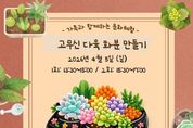[경기뉴스원/경기뉴스1] | 제주도교육청 송악도서관은 4월 5일 식목일을 맞아 가족 구성원 20팀을 대상으로 가족 문화체험 프로그램 ‘고무신 다육 화분 만들기’를 운영한다. 이번 프로그램은 이수영 ㈜꽃섬 대표와 함께 그림책‘고무신 기차’를 읽고 고무신을 활용해 다육 화분을 만들어 보는 체험 활동으로 회차별 10팀씩 총 2회에 걸쳐 진행된다. 1회차는 5일 오후 1시 30분부터 3시까지 2회차는 오후 3시 30분부터 5시까지 운영되며 총 20팀이 참여할 수 있다. 참가 신청은 제주특별자치도교육청 공공도서관 누리집에서 25일 오전 10시부터 선착순으로 받는다. 송악도서관 관계자는 “가족이 함께 그림책을 읽고 자연과 관련된 체험 활동에 참여하며 독서의 즐거움과 환경의 소중함을 함께 느낄 수 있는 시간이 되길 바란다”며 “앞으로도 지역 주민이 함께 참여할 수 있는 다양한 가족 프로그램을 지속적으로 운영하겠다”고 말했다.