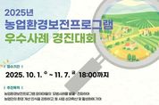 [경기뉴스원/경기뉴스1] | 농림축산식품부는 한국농어촌공사와 함께 10일 청주 오스코(OSCO)에서 '2025년 농업환경보전프로그램 우수사례 경진대회' 최종 발표심사와 시상식을 개최했다. 농업환경보전프로그램은 지역 단위의 농업환경보전 활동을 통해 농업의 공익적 기능을 강화하고, 농업인의 환경보전 인식을 높이기 위해 2019년 5개 마을을 시작으로 도입된 사업이다. 현재는 전국 39개 마을에서 프로그램이 추진되고 있다. 농식품부는 참여 마을의 다양한 개선·모범 사례와 우수 성과를 발굴·공유하고 이를 통해 사업 효과를 높이기 위해 이번 경진대회를 마련했다. 지난 2개월간 전국 39개 참여 마을로부터 참가신청서를 접수한 뒤, △농업환경 분야(토양·생태·용수·경관·문화유산 등)별 주요 개선 성과 △사업 추진 전·후 변화 △독창적 성과 등을 중심으로 전문가 서면심사를 진행해 6개 마을을 최종 발표심사 대상으로 선정했다. 12월 10일 열린 최종 발표심사에서는 △대상 충남 보령 ‘소양마을’ △최우수상 제주 서귀포 ‘대평리마을’ △우수상 4개 마을(경북 의성 ‘장2리마을’, 강원 양구 ‘양구지구’, 충북 진천