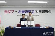 [경기뉴스원/경기뉴스1] | 종로구는 9월 23일 서울과학고등학교와 ‘서울과학고 영재교육원 종로구민 특별선발 업무협약’을 맺었다. 협약에 따라 서울과학고는 매년 영재교육원에서 구민 또는 관내 중학교 재학생 20명을 특별 선발하고, 종로구는 영재교육원 학생·학부모의 부담을 줄이기 위해 수익자부담금을 교육경비로 지원한다. 이로써 학생들은 서울과학고의 첨단 학습 시설과 우수한 교육 자원을 경험하며 과학적 사고력과 문제 해결 능력을 키우고, 진로 탐색의 기회도 가질 수 있을 것으로 기대된다. 아울러 양 기관은 초등학생 멘토링 사업이나 방학 캠프 등을 함께 기획·운영할 계획이다. 정문헌 구청장은 “앞으로도 종로 청소년이 과학과 수학을 즐겁게 배우고 자신감을 가질 수 있도록 아낌없이 지원하겠다”라고 밝혔다.