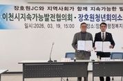 [경기뉴스원/경기뉴스1] | 이천시지속가능발전협의회는 지난 3월 19일, 장호원읍행정복지센터 대회의실에서 장호원청년회의소와 지역사회 청년활동의 리더십 과제 협업을 위한 업무협약(MOU)을 체결했다고 밝혔다. 이날 협약식에는 협의회 측의 정철화 상임회장을 비롯한 박현남 공동회장, 방복길 운영위원장, 임성아 사무국장, 이상용 위원 등 지역위원이 참석했으며, 장호원JC 측에서는 서우진 회장을 비롯한 남윤일 특우회장, 사무국장과 직전 회장 등이 참석해 양 단체의 협업을 자축하는 한편, 남해원 장호원읍장도 참석해 양 단체의 협업 의지를 격려했다. 이번 협약으로, 협의회와 업무협약을 체결한 기관·단체는 총 56개로 늘어나 지역사회 내 지속가능발전 실현을 위한 민관 협력 기반이 한층 강화될 것으로 기대된다. 협의회는 올해 초 제12기 152명의 위원으로 구성되어 지구환경 보호와 기후위기 대응, 탄소중립활동 전개, 사회적 약자 동행, 지역사회 공동체 협업 네트워크화를 목표로, ▲더 좋은 나눔 냉장고 운영 ▲지역사회 지속가능발전목표 제시 ▲나의 지속가능발전목표(SDGs) 실천 사례 챌린지 ▲폐건전지 수거 활동 등을 주 활동으로