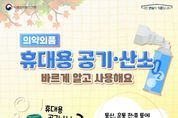[경기뉴스원/경기뉴스1] | 식품의약품안전처는 등산, 운동 전·후 등에 사용하는 의약외품 ‘휴대용 공기·산소’의 올바른 사용법, 주의사항 등 안전 사용 정보를 안내했다. 의약외품 ‘휴대용 공기·산소’는 ‘등산, 운동 전·후 등에 공기나 산소를 일시적으로 공급하여 사람이 흡입하도록 사용하는 휴대용 물품’으로, 의약품이 아니기 때문에 치료 또는 치료보조의 목적으로 사용하지 말아야 한다. 일반적인 ‘휴대용 공기·산소’ 사용 방법은 ‘휴대용 공기·산소’ 캡이 제품 본체(캔)에 잘 결합되어 있는지 확인한 후, 마스크를 입에 가까이 대고, 버튼을 누르며 들숨으로 공기(산소)를 흡입하여 사용해야 한다. 일시적으로 사용하고, 장시간 또는 지속적으로 사용하지 말아야 한다. 또한, 다른 물품과 혼합하여 사용하지 말고, 얼굴에 밀착하여 사용하거나, 밀폐된 공간에서 사용하지 말아야 한다. 특히, 담배 등 불꽃을 향하거나, 화기나 전기적 장치 부근에서 사용을 피해야 하며, 너무 자주 사용하면 코점막을 건조시킬 수 있으므로 주의해야 한다. 보관 시에는 40℃ 이상의 장소나 자동차 실내에 보관하지 말고, 직사광선 및 화기를