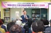 [경기뉴스원/경기뉴스1] | 의왕시는 11월 12일 오봉산마을 아파트 작은도서관에서 ‘찾아가는 시장실’을 열고 아파트 주민들과 함께 시정 현안과 생활 불편사항에 대해 소통하는 시간을 가졌다. 이번 행사는 주민 50여 명이 참석한 가운데 진행됐으며, 이 자리에서 김성제 시장은 2025년 시정 현안을 설명하고 아파트 주민들의 건의 사항에 대해 적극적으로 답변하는 등 참석자들의 큰 호응을 얻었다. 아울러, 이날 주민들은 ▲안양천 정비 현황 ▲의왕~봉담간 고속도로 소음방지벽 공사 일정 ▲아파트 인근 산책로·공원·도로 정비 상황 ▲배정 초등학교 통학 문제 등 실생활과 밀접한 다양한 사안을 문의하고 건의했다. 김성제 시장은 “생활 현장에서 시민들의 목소리를 직접 듣고, 해결 방안을 함께 고민하는 것이 진정한 소통행정”이라며, “건의된 사항은 면밀히 검토해 시민들의 불편 사항을 신속히 해결하겠다”고 말했다. ‘찾아가는 시장실’은 김성제 시장이 직접 시민·단체 등을 찾아 민의를 청취하는 소통행정이다. 김 시장은 오는 ▲11월 24, 인덕원자이에스케이뷰아파트 ▲11월 27일, 의왕시 체육인 ▲12월 4일, 대방디