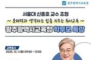 [경기뉴스원/경기뉴스1] | 광주시교육청이 오는 12월 1일 오전 9시 40분 광주시교육청교육연수원 대강당에서 서울대학교 교육학과 신종호 교수 초청 학부모 특강을 진행한다. 이번 특강은 ‘문해력과 생각하는 힘을 키우는 독서교육’을 주제로, 학부모에게 가정에서의 안정적인 독서환경 조성과 문해력·사고력 향상을 위한 학부모의 역할 등을 알리는 시간으로 진행된다. 신종호 교수는 문해력, 학습심리, 교육평가 분야의 권위자로, 한국교육심리학회 등 다양한 학술단체에서 활동하고 있다. 또한 tvN ‘유 퀴즈 온 더 블록’, EBS 미래교육플러스 등 방송과 ‘읽는 아이가 미래를 지배한다’, ‘공부머리 독서법’ 등 저술 활동을 통해 대중과 활발히 소통하고 있다. 관심 있는 광주 지역 학부모면 누구나 천명 선착순으로 참여할 수 있다. 참가를 원하는 학부모는 오는 28일까지 안내된 QR코드 및 네이버 폼을 통해 신청이 가능하다. 이와 더불어 시교육청은 강의 당일 행사장 주차 공간 협소로 인해 참석자들의 대중교통 이용을 적극 권장하고 있다. 이정선 교육감은 “문해력은 단순히 글을 읽는