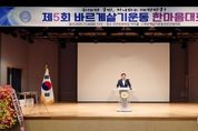 [경기뉴스원/경기뉴스1] | 바르게살기운동 진안군협의회(회장 김옥봉) 주관으로 제5회 바르게살기운동 한마음대회가 지난 5일 진안문화의 집에서 개최됐다. 이날 행사에서는 국민의례 및 성과보고 영상 시청, 유공자 포상 등의 본행사와 부대행사로 화합 한마당의 자리가 열렸다. 행사에는 전춘성 진안군수, 동창옥 진안군의회 의장 및 의원, 전북특별자치도 전용태 의원, 바르게살기운동 전북특별자치도협의회 이종서 회장 등 150여 명의 회원이 함께했다. 올해로 제5회를 맞이하는 한마음대회는 정직한 개인, 더불어 사는 사회, 건강한 국가를 만들어 가기 위해 노력한 회원들을 위로하고 격려하는 행사이다. 성과보고 영상에는 바르게살기운동진안군협의회의 중점 사업을 회원들이 각계 각층에서 활동했던 모습이 담겼고, 홍삼축제 홍보를 위해 홍삼티셔츠를 입은 채 제주도 및 전남 영광에서 적극 홍보하는 모습이 인상적이었다. 수여식에서는 협의회 발전에 공을 세운 8명이 수상의 영예를 안았다. 행정안전부 표창은 정재철 산악회장이 수상하고, 진안군수 표창은 박희규 정천면위원회 사무장이 수상했다. 바르게살기운동중앙회장 금장은 전춘성 군수,