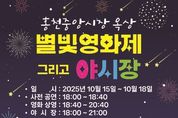 [경기뉴스원/경기뉴스1] | 홍천군은 10월 15일부터 18일까지 매일 저녁 6시, 홍천중앙시장 옥상 정원에서 가을밤의 낭만이 가득한 ‘별빛영화제 그리고 야시장’을 개최한다고 밝혔다. 이번 행사는 홍천전통시장 활성화를 위해 마련된 문화형 야시장 프로그램으로, 별빛 아래에서 영화와 먹거리를 동시에 즐길 수 있는 특별한 야외 페스티벌이다. ‘별빛영화제 그리고 야시장’에서는 ▲15일 서울의 봄, ▲16일 베테랑 2, ▲17일 소방관, ▲18일 히트맨 2가 상영된다. 매일 저녁 6시부터 6시 40분까지는 프리 공연으로 가수 이진, 홍지나, 그리고 하모니카 동호회 한옥타브, 하모홀릭이 무대에 올라 감미로운 음악으로 영화제의 분위기를 한껏 끌어올린다. 공연이 끝난 뒤에는 6시 40분부터 본격적인 영화 상영이 시작되어, 가을 저녁의 감성과 함께 다채로운 즐거움을 선사한다. 영화 관람과 함께 즐길 수 있는 야시장 먹거리도 풍성하게 준비됐다. 홍천중앙시장 상인회가 직접 운영하는 부스에서는 어묵, 떡볶이, 닭강정, 튀김 등 시장표 간식은 물론, 시원한 음료와 간단한 주류까지 마련되어 관람객들의 오감을 만족시킬 예정이