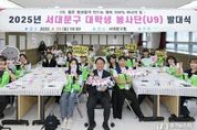 [경기뉴스원/경기뉴스1] | 서대문구는 관내 대학 재학생과 거주 대학생 50여 명이 참여하는 ‘대학생 봉사단 U9’가 최근 발대식을 갖고 출범했다고 23일 밝혔다. ‘U9’란 명칭은 서대문구 내 소재한 9개 대학을 상징한다. 단원들은 청년세대의 창의적이고 자발적인 참여를 바탕으로 ▲청소년 학습·진로 멘토링 ▲환경 개선 및 기후 위기 대응 ▲이웃사랑 실천 활동 등을 펼칠 예정이다. 이달 20일 구청 기획상황실에서 열린 발대식은 봉사단 선서와 팀별 네트워킹 프로그램 등으로 진행됐다. 단원들은 선서를 통해 ‘나눔과 실천으로 더불어 사는 따뜻하고 행복한 지역사회를 만들어가겠다’는 의지를 다졌다. 또한 김난희 스위치온 대표로부터 청년 봉사 프로젝트 사례를 소개받고 자신들이 직접 기획하고 참여할 수 있는 봉사활동 방향을 논의했다. 발대식에 함께한 이성헌 서대문구청장은 “대학생들의 활기찬 에너지와 창의적 아이디어가 따뜻한 지역사회를 만드는 큰 힘이 될 것으로 믿으며 청년이 주도하는 다양한 봉사활동을 지속해서 지원하겠다”고 말했다.