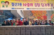[경기뉴스원/경기뉴스1] | 광명시 철산3동 새마을부녀회는 지난 19일부터 20일까지 이틀간 철산3동 행정복지센터 앞마당에서 ‘사랑의 김장 나누기’ 행사를 열었다. 이번 행사에는 철산3동 새마을부녀회와 유관 단체 회원 50여 명이 참여해 정성껏 담근 김장김치를 취약계층 62가구에 10kg씩, 관내 경로당 9곳에는 20kg씩 전달했다. 또한 한국마사회 광명지사와 광명동부 새마을금고 등 지역의 여러 기관·단체가 따뜻한 나눔에 함께했다. 임순자 회장은 “물가 상승으로 김장 준비가 어려운 이웃들에게 정성껏 담근 김치가 따뜻한 마음으로 전해지길 바란다”며 “앞으로도 회원들과 함께 나눔과 봉사를 꾸준히 이어가겠다”고 전했다. 손영만 동장은 “쌀쌀한 날씨에도 이웃 사랑을 실천한 새마을회원들과 유관 단체원들에게 감사하다”며 “이번 김장 나눔으로 어려운 이웃들이 따뜻한 겨울을 보내길 바란다”고 말했다. 한편, 철산3동 새마을부녀회는 이웃돕기 바자회, 불고기·반찬 나눔, 거리 청소 등 다양한 봉사활동으로 따뜻하고 살기 좋은 지역사회 조성에 힘쓰고 있다.