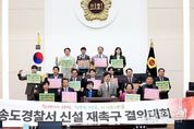 [경기뉴스원/경기뉴스1] | 인천광역시의회가 송도경찰서 신설을 다시 한번 강력히 촉구하고 나섰다. 인천시의회는 31일 진행된 ‘제307회 임시회’ 폐회 후 결의대회를 통해 송도경찰서 신설을 강력히 촉구하는 성명서를 발표했다. 이번 성명서는 이강구 의원과 장성숙 의원의 공동 제창으로 진행됐다. 이강구 의원(연수구5)은 지난해 12월 말 기준 연수구 전체 인구 약 40만 9천 명 가운데 송도국제도시 인구가 약 22만 명으로 연수구 전체 인구의 54퍼센트 이상을 차지하고 있다고 주장한 바 있다. 이어 앞으로도 대규모 신규 입주가 예정돼 있어 치안 수요는 더욱 빠르게 증가할 수밖에 없다고 설명했다. 이 의원은 “지난 2024년 3월 송도경찰서 신설 촉구 결의안을 통과시킨 바 있으나, 2년이 지나도록 경찰청과 행정안전부는 실질적인 조치를 취하지 않고 있다”면서 “주민의 생명과 안전을 빈틈없이 보호하기 위해 송도경찰서 신설이 즉각 추진돼야 한다”고 강력히 촉구했다. 장성숙 의원(비례대표)은 송도국제도시가 연수구 원도심의 2배에 이르는 넓은 면적을 보유하고 있으며, 3개 경찰서가 설치된 경기도 부