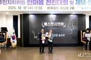 [경기뉴스원/경기뉴스1] | 목포시의회 송선우(산정·대성·죽교·북항동) 관광경제위원장이 17일 에메랄드 웨딩홀 2층에서 열린 제8회 목포시 주민자치위원 한마음 전진대회에서 ‘목포시 주민자치위원회 베스트 시의원상’을 수상했다. 이 상은 목포시 주민자치위원장협의회가 수여한 것으로, 지역 주민과의 소통을 바탕으로 한 헌신적인 의정활동과 주민자치 발전에 기여한 공로를 인정해 마련됐다. 해당 상은 이번 회차에 처음 제정돼 송선우 위원장이 초대 수상자의 영예를 안았다. 송 위원장은 평소 탁월한 소통 능력을 바탕으로 주민들의 다양한 의견을 의정활동에 적극 반영해 왔으며, 특히 지역 현안 해결 과정에서 보여준 진정성과 열정으로 주민자치의 모범을 제시했다는 공로를 인정 받았다. 또한 주민 복지 향상과 지역 발전을 위한 실질적인 정책 추진에 힘써 왔다는 점에서 높은 평가를 받았다. 송선우 위원장은 수상 소감을 통해 “이 상은 개인이 아닌, 현장에서 함께 고민하고 노력해 온 주민자치위원 여러분과 시민들께서 주신 상이라고 생각한다”며 “앞으로도 주민의 목소리에 더욱 귀 기울이며, 주민자치가 지역 발전의 중심