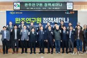 [경기뉴스원/경기뉴스1] | 완주군의 미래성장동력 확보를 위한 핵심 의제인 분산에너지와 피지컬 AI를 논의하기 위해 완주연구원이 10일 정책세미나를 열고 지역 전략 마련에 나섰다. 완주연구원은 지난해 지방 거점대학인 전북대학교와 완주군이 글로컬 대학 30 업무협약에 따라 군 지역 발전 및 현안 해결을 위해 지·산·학·연 협력 네트워크를 구축해 설립한 전문 정책·연구기관이다. 이날, 완주군청 대회의실에서 열린 세미나에는 에너지 및 AI 분야 전문가, 대학 관계자, 공무원 등 100여 명이 참석해 ‘완주형 분산에너지 특화지역 지정 추진방안’과 ‘피지컬 AI와 제조업 혁신’을 주제로 미래 성장전략을 폭넓게 논의했다. 주요 발표에서는 ▲분산에너지 체계 도입 필요성과 타 지역 사례, 지역 실증 기반 마련 ▲피지컬 AI를 활용한 제조 산업·서비스 혁신 등 적용 사례 등 완주형 에너지 자립과 피지컬AI와 제조업 융합 전략 등이 다뤄졌으며, 토론자들은 실효성 있는 정책 실행을 위한 제도 개선 및 협력체계 구축의 중요성을 강조했다. 유희태 완주군수는 “분산에너지와 인공지능(AI)은 더 이상 먼 미래 기술이 아니라