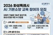 [경기뉴스원/경기뉴스1] | 화성특례시가 시민이 직접 AI 교육을 확산하는 선순환 생태계를 조성하고자 ‘2026년 AI 시민 리더 양성 교육’ 참여자를 모집한다. 이번 사업은 단순한 지식 전달을 넘어 시민이 직접 지역 내 AI 교육을 이끄는 구조를 만드는 것이 핵심이다. 교육은 기초 과정부터 강사 양성, 기업 맞춤형 교육까지 단계별로 구성해 운영된다. 먼저, AI 전문 교육을 희망하는 시민을 대상으로 한 ‘AI 기본 소양 교육’을 운영한다. 해당 교육은 생성형 인공지능의 개념과 윤리, 기술 트렌드 및 창작 기초를 중심으로 구성된 입문 과정이다. ‘AI 기본 소양 교육’은 화성특례시청 AI 혁신센터 AI 랩(경기도 화성특례시 만세구 남양읍 남양로 708 스마트도시센터)과 소우주사회적협동조합 교육장(경기도 화성특례시 동탄구 동탄신리천로2길 65, 사회적기업공간)에서 진행된다. AI 혁신센터 AI 랩에서는 4월 13일과 20일, 소우주사회적협동조합 교육장에서는 4월 11일과 18일에 운영된다. 모집은 3월 25일부터 시작하며 선착순으로 마감된다. 기본 교육 이후에는 심화 과정인 ‘AI 시민 리더 양성 과