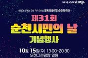 [경기뉴스원/경기뉴스1] | ‘더 큰 미래를 위한 삶의 쉼터, 치유도시 순천!’ 그 새로운 도약을 위한 순천시(시장 노관규)가 오는 15일 오천그린광장 일원에서 24개 읍면동 화합행사와 함께 ‘제31회 순천시민의 날’기념식을 개최한다. 이번 행사는 오후 1시부터 밤 8시 30분까지 28만 순천시민이 하나되어 글로벌 문화산업, 삶이 머무는 치유도시 메카로 발돋움한 일류 순천의 자부심을 높이는 장으로 어울한마당 큰 잔치가 성대하게 펼쳐진다. 이날 펼쳐지는 제31회 순천시민의 날 행사는 지역사회의 화합과 단결을 다짐하고, 순천의 발전을 기념하는 의미있는 시간으로 1부 행사와 2부 행사로 나눠 진행된다. 1부 행사는 오천그린광장 주차장 일원에서 오후 1시부터 오후 5시까지 ▲24개 읍면동 화합을 위한 장기자랑 ▲어린이 한마당 잔치 ▲버블매직쇼 ▲울려라! 도전 순천역사골든벨 ▲읍면동 먹거리부스 ▲순천하세요!(김수련, 양서영, 하숙자 가수의 공연) ▲체험부스 ▲푸짐한 경품 등이 마련돼 가족 단위 방문객에게 인기가 높을 것으로 기대된다. 특히 시민들이 함께 즐길 수 있는 ‘먹거리 부스’에서는 24개 읍면동이 참