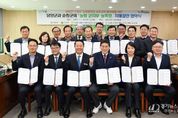 [경기뉴스원/경기뉴스1] | 담양-순창군 농축협이 19일 담양군청 송강정실에서 자매결연을 맺고 상생협력을 담은 협약서에 공동 서명했다. 이날 협약식에서는 정철원 담양군수, 최영일 순창군수를 비롯해 김은경 NH농협 전남지역 경영부본부장, 이창완 전북지역 경영부본부장, 이광재 담양군지부장, 신종철 순창군지부장과 지역농축협장 등 20여 명이 참석했다. 이번 협약을 통해 양 농협 군지부와 농축협은 상호 유기적 협력체계를 구축하고 동반성장을 위한 사업 연계, 인적·물적 자원 교류, 각종 협력사업 추진 등을 약속했다. 전남 담양과 전북 순창군은 행정구역은 다르지만 지리적으로 맞닿은 인접 지역으로, 2003년부터 ‘구곡순담(구례·곡성·순창·담양) 장수벨트행정협의회’를 중심으로 다양한 공동 사업을 펼쳐왔다. 또한 담양군문화재단과 순창발효관광재단 간 업무협약을 통해 활발한 교류를 이어오며 끈끈한 협력 관계를 유지해 왔다. 특히 2024년 4월 29일에는 담양호 저수량 확대를 위해 순창군 구림면 도수터널 차수벽을 철거하고 용수를 공급하는 협력사업을 추진해 가뭄 극복에 힘을 모았다. 이어 지난
