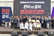 [경기뉴스원/경기뉴스1] | 문경시는 지난 8일 문경중앙시장 어울림마당에서 (사)대한민국한식포럼, (사)한국중찬문화교류협회와 대한민국 한식, 중식 유명 셰프 10명 등 1,000여 명이 참여해 스타셰프 미(味)식(食) 축제를 성황리에 마무리 했다. 이번'한식 vs 중식 최강셰프 요리대전’은 한식부문에는 손승달 한식명장, 옥치민 한식명장, 노고은 한식대가, 손정희 한식대가와 중식부문 구광신 중식장인, 최충현 중식장인, 황진선 중식장인, 장도 중식장인 등 스타 셰프들이 참여해 맛대결을 펼쳤다. 문경 특산물 약돌돼지·표고버섯을 주재료로 활용해 화려한 요리실력을 선보였으며, 300여 명의 시식군단이 현장투표를 통해 우승셰프와 최우수 메뉴를 선발했다. 선정된 메뉴는 중앙시장 어울림마당 먹거리 창업 2개 점포에 선보일 예정이다. 특히, 문경시는 (사)대한민국한식포럼(회장 문웅선), (사)한국중찬문화교류협회(회장 구광신)와‘먹거리 개발을 위한 상생협약(MOU)’을 체결하여, 지역 먹거리 브랜드 이미지 제고를 위해 적극적으로 협력하기로 했다. 신현국 문경시장은 “이번 상생 업무협약을 통해 문경 특산물을 활용한 새