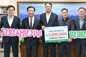 [경기뉴스원/경기뉴스1] | 거창군은 지난 10일 농협중앙회 거창향우회가 고향사랑기부금 500만 원을 기부했다고 전했다. 이날 기부식에는 이종삼 농협중앙회 울산본부장, 최도영 김해농수산물종합유통센터 지사장, 이희열 농협중앙회 거창군지부장, 신화범 북부농협조합장, 김종두 수승대농협조합장 등이 참석해 고향에 대한 깊은 애정을 담아 기부금을 전달했다. 농협중앙회 거창향우회는 거창 출신으로 농협중앙회와 농협은행에 재직하고 있는 향우들의 모임으로 서울과 경남 지역에 재직하고 있는 30여 명의 회원으로 구성되어 있으며, 고향사랑기부제 시행 첫해 500만 원 기부에 이어 올해도 고향의 발전을 응원하며 기부에 동참했다. 이종삼 농협중앙회 울산본부장은 “고향을 살리고 지역의 농가에도 보탬이 되는 고향사랑기부제에 동참하게 되어 매우 뜻깊게 생각한다”며 “앞으로도 고향의 발전을 위해 지속해서 관심을 가지고 다양한 방식으로 고향사랑을 실천하겠다”고 말했다. 구인모 거창군수는 “고향에 대한 애틋한 마음을 기부로 전해주신 농협중앙회 향우님들께 진심으로 감사드린다”며 “소중한 뜻이 지역발전에 큰 힘이 될 것으로 기대한다”고