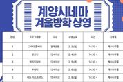 [경기뉴스원/경기뉴스1] | 인천광역시교육청계양도서관은 시민에게 다채로운 영상문화 경험을 제공하기 위해 ‘겨울방학 계양시네마’와 ‘테마 영화 큐레이션 코너’를 운영한다고 29일 밝혔다. 먼저,‘겨울방학 계양시네마’는 휴관일을 제외한 2월 한 달간 운영하며, 계수나무홀에서 온 가족이 즐길 수 있는 다양한 장르의 영화 14편을 상영할 예정이다. 이와 함께 디지털자료실에서는 사서가 선정한 ‘테마 영화 DVD 큐레이션 코너’가 상시 운영된다. 2월의 테마는 ‘고전과 문학’으로, 인문학적 감수성과 깊이 있는 사유를 끌어낼 수 있는 작품을 선별․전시하여 책과 영화가 어우러진 특별한 문화 경험을 제공할 계획이다. 계양도서관 관계자는 “추운 겨울, 도서관에서 영화를 통해 정서적 휴식을 취하고 인문학적 소양을 쌓는 즐거운 시간이 되길 바란다”고 전했다. 자세한 사항은 계양도서관 누리집을 확인하거나 디지털자료실로 문의하면 된다.