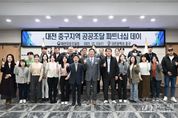 [경기뉴스원/경기뉴스1] | 대전 중구는 10일 중구청 대회의실에서 대전지방조달청과 공동으로 ‘대전 중구지역 공공조달 파트너십 데이’를 개최했다고 밝혔다. 이번 행사는 지역 중소기업의 공공조달시장 진입 지원, 기업–수요기관 간 교류 확대, 조달제도 이해도 향상을 위해 마련됐으며, 중구 관내 기업과 중구청 관계자 등 30여 명이 참여했다. 행사에는 ▲조달기업 제품 소개 ▲조달등록 절차 안내 ▲조달청 지원제도 설명 등 기업들에게 실질적인 도움을 주는 프로그램이 진행됐으며, 특히, 중구 관내 조달기업과 중구청 수요부서를 1:1로 연결하는 맞춤형 매칭 상담이 운영돼 큰 관심을 모았다. 기업들은 자사의 조달등록 제품을 직접 소개하고, 수요부서 담당자들은 제품 성능·활용도·가격 등을 현장에서 즉시 확인하며 실제 구매 가능성을 논의하는 등 실무 중심의 상담이 이뤄졌다. 중구 관계자는 “지역 기업이 공공조달 시장에서 더욱 활발히 활동할 수 있도록 실질적인 지원을 지속하겠다”라며, “대전지방조달청과 협력해 기업의 조달시장 진입을 돕는 다양한 프로그램을 확대해 나가겠다”라고 말했다.