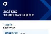 [경기뉴스원/경기뉴스1] | KBO는 퓨처스리그에서 활동할 KBO 심판위원을 공개 채용한다. 이번 채용은 KBO 야구심판 양성과정 수료자(2026년 야구심판 양성과정 수료 예정자 포함) 또는 대한야구소프트볼협회(KBSA) 및 산하단체, 독립리그 소속 심판으로 1년 이상의 심판 활동 경력(단체장 직인 필수) 보유자에 한해서 지원이 가능하다. 최종 합격자는 2026 KBO 공식 심판위원으로 활동하게 되며, 근무 종료 후 평가 결과에 따라 정규직 전환이 검토된다. 채용과 관련된 세부 정보 및 우대 사항은 채용 공고문을 통해 확인 가능하다. 접수 기간은 오늘(2일)부터 23일(월)까지며, KBO 채용 홈페이지(kbo.saramin.co.kr)에서 지원 가능하다.