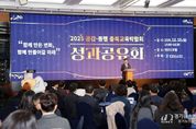 [경기뉴스원/경기뉴스1] | 충청북도교육청은 15일 14시, 엔포드 호텔에서 2025. 공감‧동행 충북교육박람회 성과공유회를 개최했다. 행사에는 도교육청 및 직속기관, 교육지원청, 각급 학교와 유관기관 관계자, 부스 및 프로그램 운영 담당자, 자원봉사자 등 총 300여 명이 참석했다. 성과공유회는 지난 10월 22일(수)부터 26일(일)까지 5일간 교육문화원과 생명누리공원에서 열린 충북교육박람회의 주요 성과와 우수 사례를 공유하고 향후 발전 방향을 모색하기 위해 마련됐다. 특히, 박람회가 성공적으로 운영될 수 있도록 기획‧운영‧자원봉사 등 다양한 현장에서 헌신한 참여자들의 노고를 함께 돌아보고 감사의 마음을 나누는 자리였다. 성과 공유회는 '함께 만든 변화, 함께 여는 미래'를 주제로 축하공연, 1부 성찰과 공유, 2부 미래 설계 순으로 진행됐다. 축하공연에서는 '몸활동 꿈끼페스티벌 경연 한마당'에서 우수한 성과를 거둔 모충초등학교 9명 학생의 댄스 공연과 내곡초등학교 21명 학생의 합창 공연이 펼쳐졌다. 1부에서는 ▲충북교육박람회 영상 다시보기 ▲준비부터 운영까지 전 과정