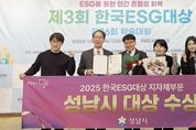 [경기뉴스원/경기뉴스1] | 성남시는 ‘제3회 한국 이에스지(ESG) 대상’ 시상식에서 지방자치단체 이에스지(ESG) 부문 대상을 받았다고 11일 밝혔다. 한국 이에스지(ESG) 대상은 사단법인 한국ESG학회가 환경(Environmental), 사회(Social), 투명경영(Governance) 분야에서 탁월한 성과를 거둔 지자체 등 공공기관과 기업, 학교, 개인 등에게 주는 상이다. 성남시는 앞선 9월 ‘이에스지(ESG) 특별시 성남’ 비전을 선포한 이후 ‘환경과 사회’, ‘사회와 투명경영’ 등 분야 간 연계 효율을 높이는 융합형 이에스지(ESG) 접근법을 제시해 높은 평가를 받았다. 해당 사업으로 △기후테크 중소기업 육성(환경) △모든 시민 무료 독감 예방접종 지원(사회) △이에스지(ESG) 시민대학 프로그램 운영(투명경영) △맨발 황톳길 11곳 운영(환경+사회) △이에스지(ESG) 환경 분야 상생 협업 추진(환경+투명경영) △나눔 명예의 전당 운영(사회+투명경영) 등이 꼽힌다. 시 관계자는 “이번 수상은 성남시만의 이에스지(ESG) 특화사업을 추진하기 위해 모든 공직자가 함께 노력해 온 결과”