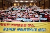 [경기뉴스원/경기뉴스1] | 지난 12월 17일 국회의원회관 대회의실에서 김형동 국회의원과 임미애 국회의원이 공동 주최한 ‘경상북도 국립․공공의대 설립 국회토론회’가 열렸다. 이날 토론회에는 이철우 경상북도지사, 권기창 안동시장 등 지자체 주요 인사와 경상북도 국립의과대학 설립 범시도민단을 포함한 시민단체 관계자 등 약 450명이 참석해 경북 지역 의료 여건과 국립의과대학 설립 필요성에 대한 논의를 이어갔다. 또한 권오을 국가보훈부 장관, 김도읍 국민의힘 정책위원회 의장, 김영호 더불어민주당 교육위원회 위원장 등 여야 의원 30여 명이 참석해 경북 국립의대 설립에 대한 관심을 보였다. 1부 개회식에서는 참석자들이 ‘경북 도민의 염원, 국립․공공의대 설립’이라는 문구가 적힌 손팻말을 들고 지역 의료 현안에 대한 공감의 뜻을 함께 표현했다. 2부에서는 유천 국립목포대 의과대학설립추진단 부단장이 ‘전남 국립의대 설립 현황 및 계획’을, 정태주 국립경국대학교 총장이 ‘경북도 국립․공공의대 설립의 필요성과 추진 방향’을 주제로 발표했다. 이어진 토론에서는 정태주 총장이 좌장을 맡고 김윤 국회의원