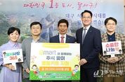 [경기뉴스원/경기뉴스1] | 대구 달서구(구청장 이태훈)는 대구광역시사회복지협의회와 이마트로부터 추석맞이 명절키트 100세트(약 700만원 상당)를 기탁받았다고 29일 밝혔다. 이번 나눔은 복지 사각지대 해소와 한가위 이웃사랑 실천을 위해 마련됐다. 김석표 회장은 “달서구의 어려운 이웃들이 풍성한 명절을 보낼 수 있도록 작은 힘을 보태고자 했다”며 “앞으로도 이마트와 함께 지속적인 사회공헌 활동을 이어가겠다”고 말했다. 이태훈 달서구청장은 “어려운 여건 속에서도 따뜻한 나눔을 실천해 주신 대구광역시사회복지협의회와 이마트에 감사드린다”며 “소중한 후원품을 필요한 가정에 신속하고 투명하게 전달하겠다”고 전했다.