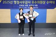 [경기뉴스원/경기뉴스1] | 전주시의회 온혜정(초선, 우아1·2, 호성동), 송영진(재선, 조촌, 여의, 혁신동) 의원이 출입기자단이 뽑은 ‘2025 행정사무감사 우수의원’에 선정됐다. 4일 전주시의회에 따르면 의회 출입기자단은 이날 오전 전주시청 브리핑룸에서 ‘2025년도 행정사무감사 우수의원 시상식’을 열고 온혜정, 송영진 의원에게 각각 우수의원상과 꽃다발을 전달했다. 전주시의회를 담당하는 신문, 방송, 뉴스통신사 등 21개 언론사로 구성된 출입기자단은 “두 의원이 행정사무감사에서 논리적인 정책 비판과 현실적인 대안 제시로 의정활동의 귀감이 됐다”고 평가했다. 특히 “올해 행정사무감사는 어느 해보다도 의원들의 활동이 활발해 우수의원을 선정하는데 있어 고심이 깊었다”는 뜻도 밝혔다. 지난달 18~26일 진행된 행정감사에서 온혜정 의원은 억대 용역비 날린 대형놀이터 부지 선정, 수소융복합사업 중단 은폐 의혹, 민생회복소비쿠폰 미신청자 등 전수조사 필요성 제기, 2년도 안된 도로표지병 고장, 잘못된 수요 예측 하수처리시설 증설 사업, 덕진구 의료급여 부당이득금 관리 부실 등의 문제를 날카롭게 지적했다
