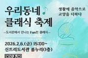 [경기뉴스원/경기뉴스1] | 인천광역시교육청신트리도서관은 2월 6일 신관 1층 봄누리 홀에서 ‘우리동네 클래식 축제’를 개최한다. 이번 음악회는 지역 주민에게 양질의 문화예술 향유 기회를 제공하는 한편, 장애 예술인의 활동을 소개하여 장애인식 개선과 공감대를 확산하기 위해 마련했다. 공연은 인천시립장애인예술단 단원들의 연주에 정영주 예술감독의 해설을 더해, 관객들이 클래식을 한층 쉽고 즐겁게 감상할 수 있도록 구성했다. 공연 프로그램은 ‘동물의 사육제’, ‘꽃날’, ‘사운드 오브 뮤직 메들리’ 등 대중에게 친숙한 곡들로 채워지며, 다양한 관·현악기와 피아노 연주가 어우러져 관객들의 눈과 귀를 사로잡을 예정이다. 공연 관람은 지역주민 70여 명을 대상으로 진행하며, 신트리도서관 누리집에서 사전 신청 할 수 있다. 자세한 사항은 신트리도서관 누리집을 확인하거나 마을교육지원과로 문의하면 된다.